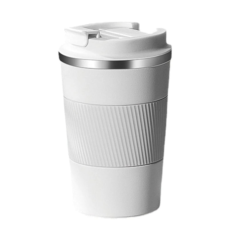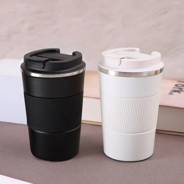 Acero inoxidable doble capa térmica que conserva calor por 6-8 horas. Grip en silicona resistente al calor, tapa antigoteo. 400 ml.