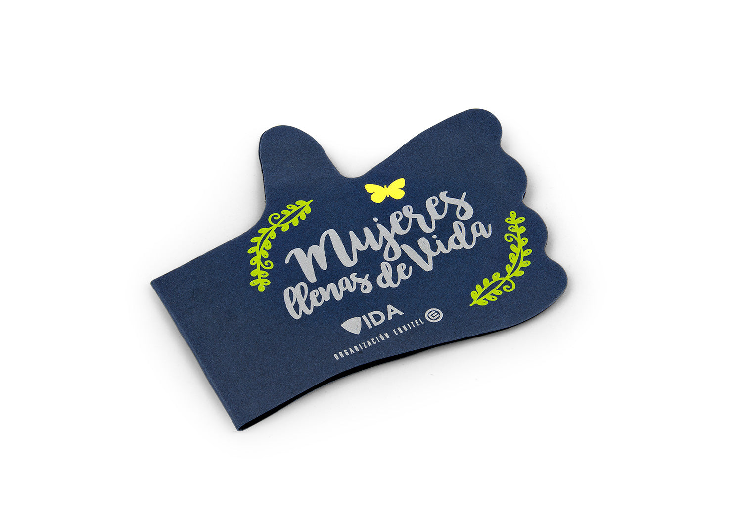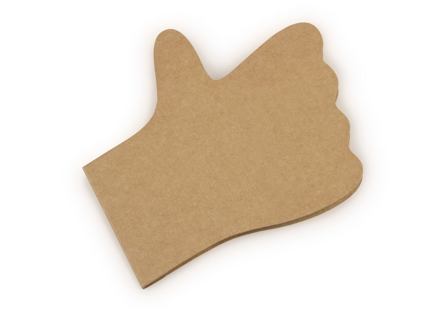 Memo con cubierta en forma de mano con pulgar arriba. 25 notas adhesivas por color (4 colores).