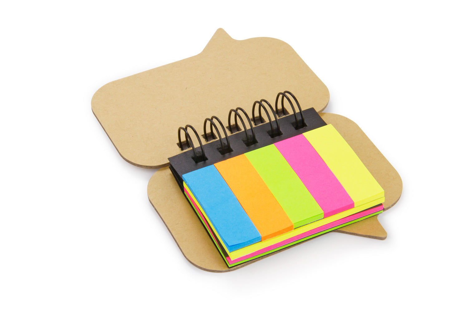 Set argollado doble "O", contiene: Juego de 5 colores de banderas adhesivas en papel x 25 unidades cada color, 3 juegos de memos adhesivos x 25 hojas cada color.