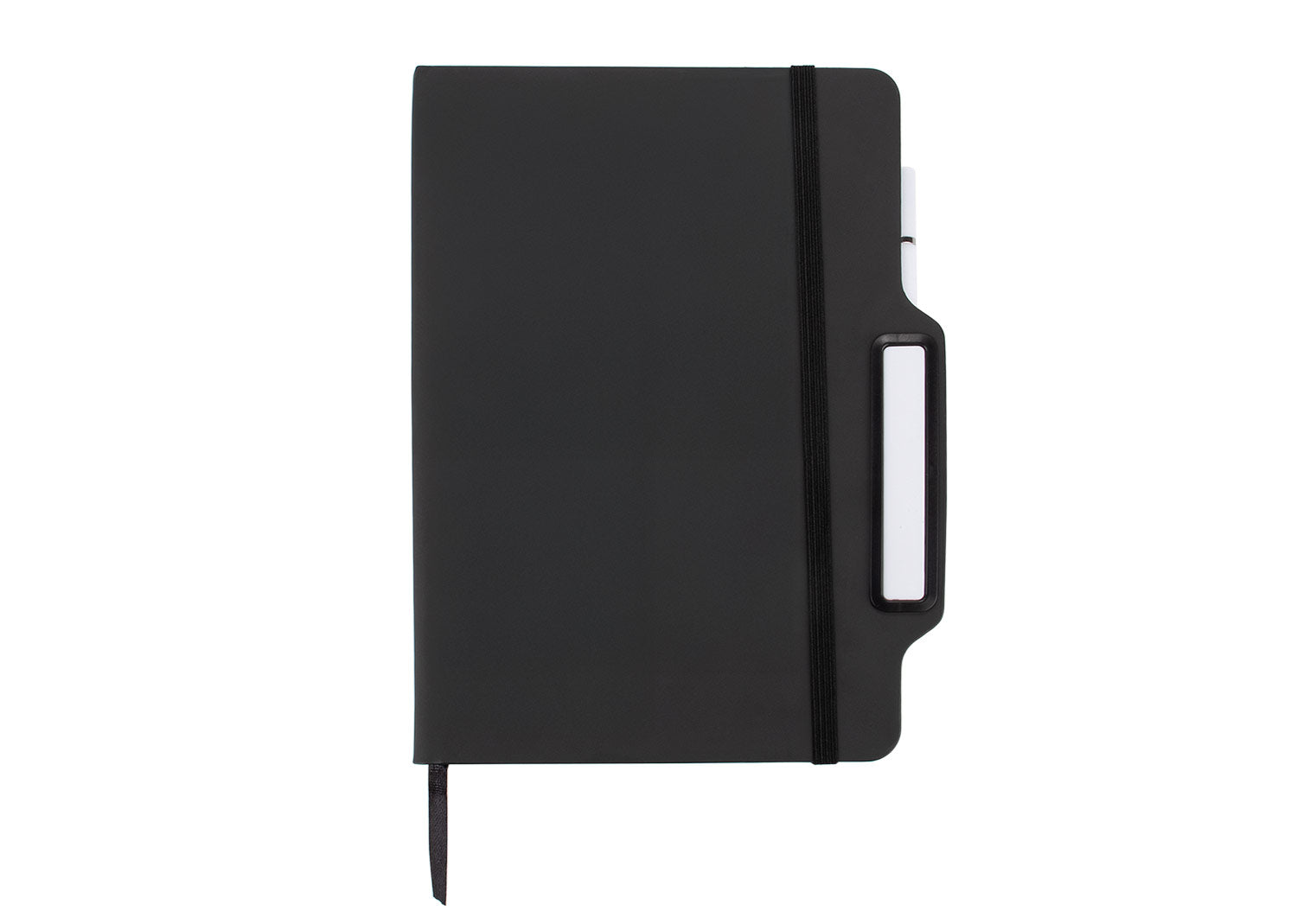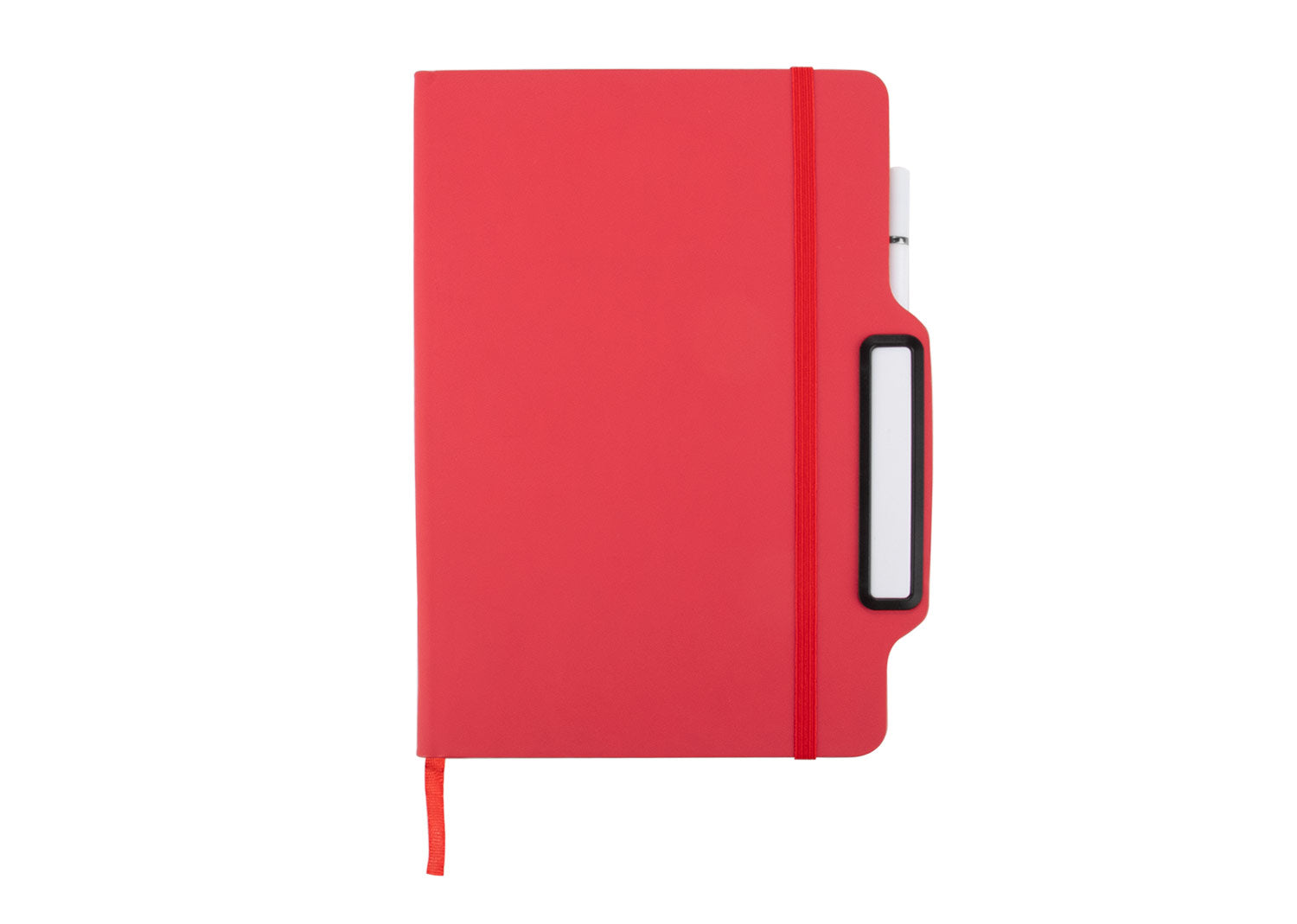 Funda de cuero sintético con función de soporte para teléfono. Tamaño A5, 70 g, 80 hojas. Bolígrafo + lápiz infinito. Hojas rayadas.