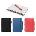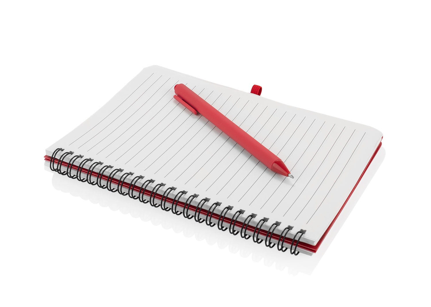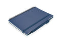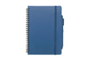 Libreta A5 argollada. Cubierta hecha de plástico recuperado del océano. Banda elástica para cierre. Incluye bolígrafo. Hojas rayadas.