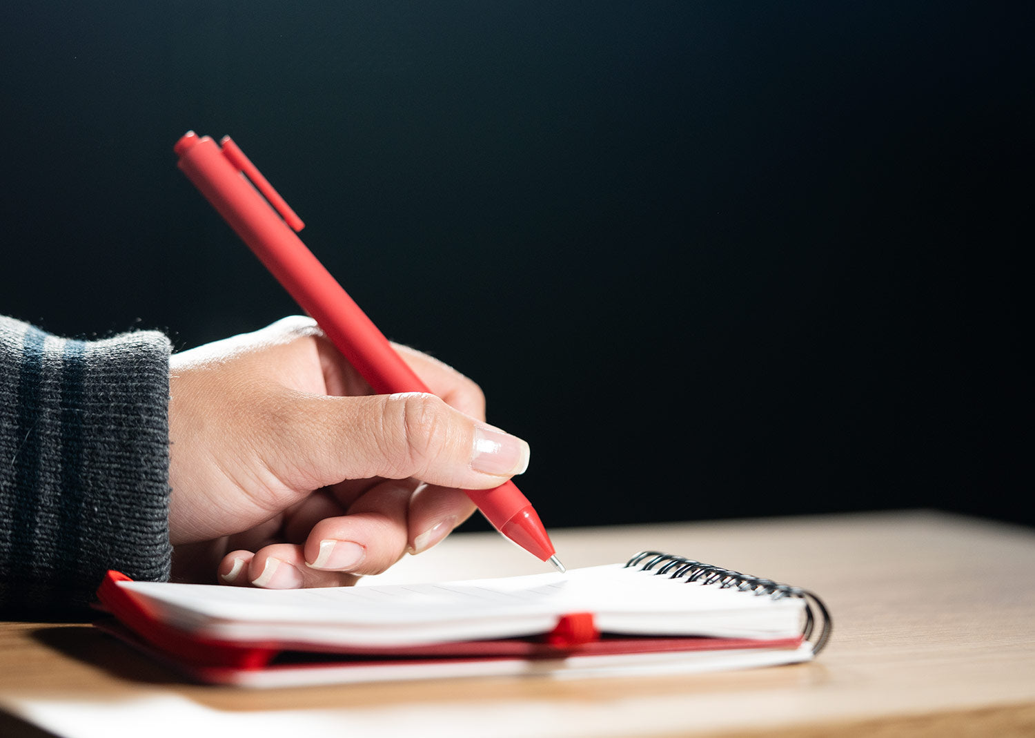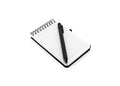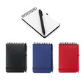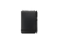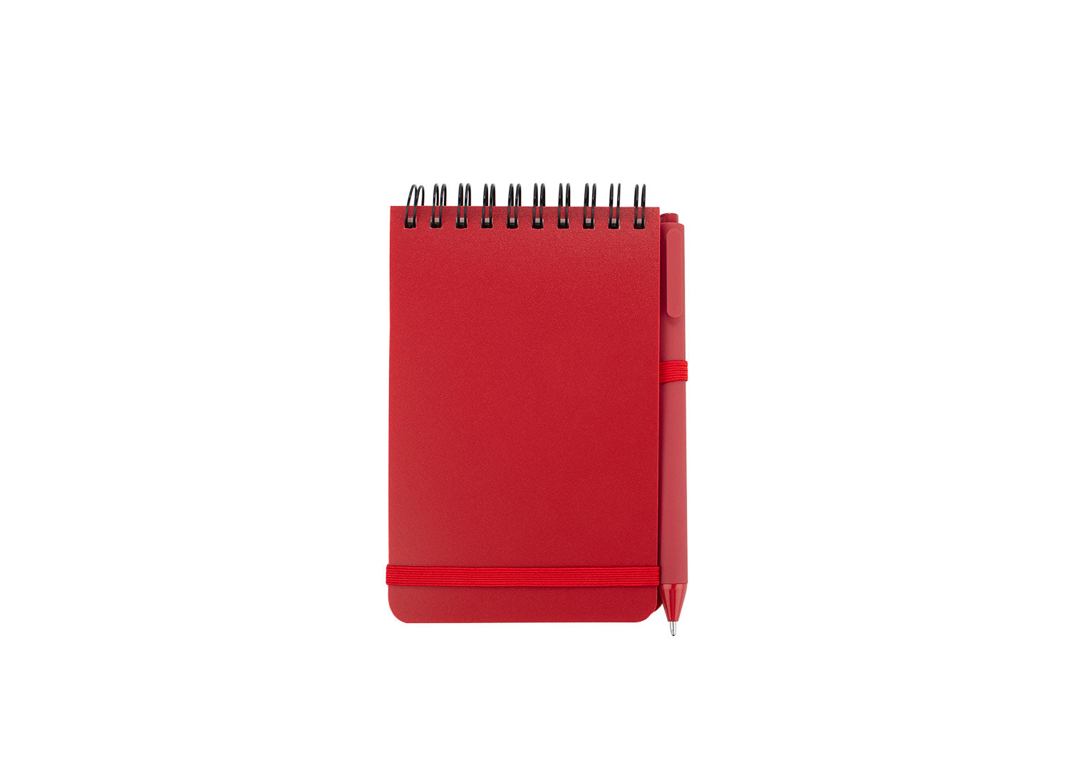 Mini libreta argollada hoja A6. Cubierta de libreta y bolígrafo hechos con plástico recuperado del océano. Banda elástica para cierre. Hojas rayadas.