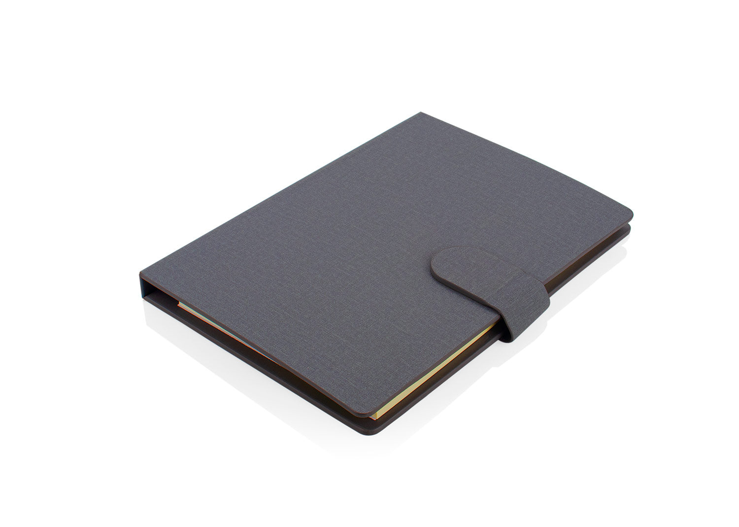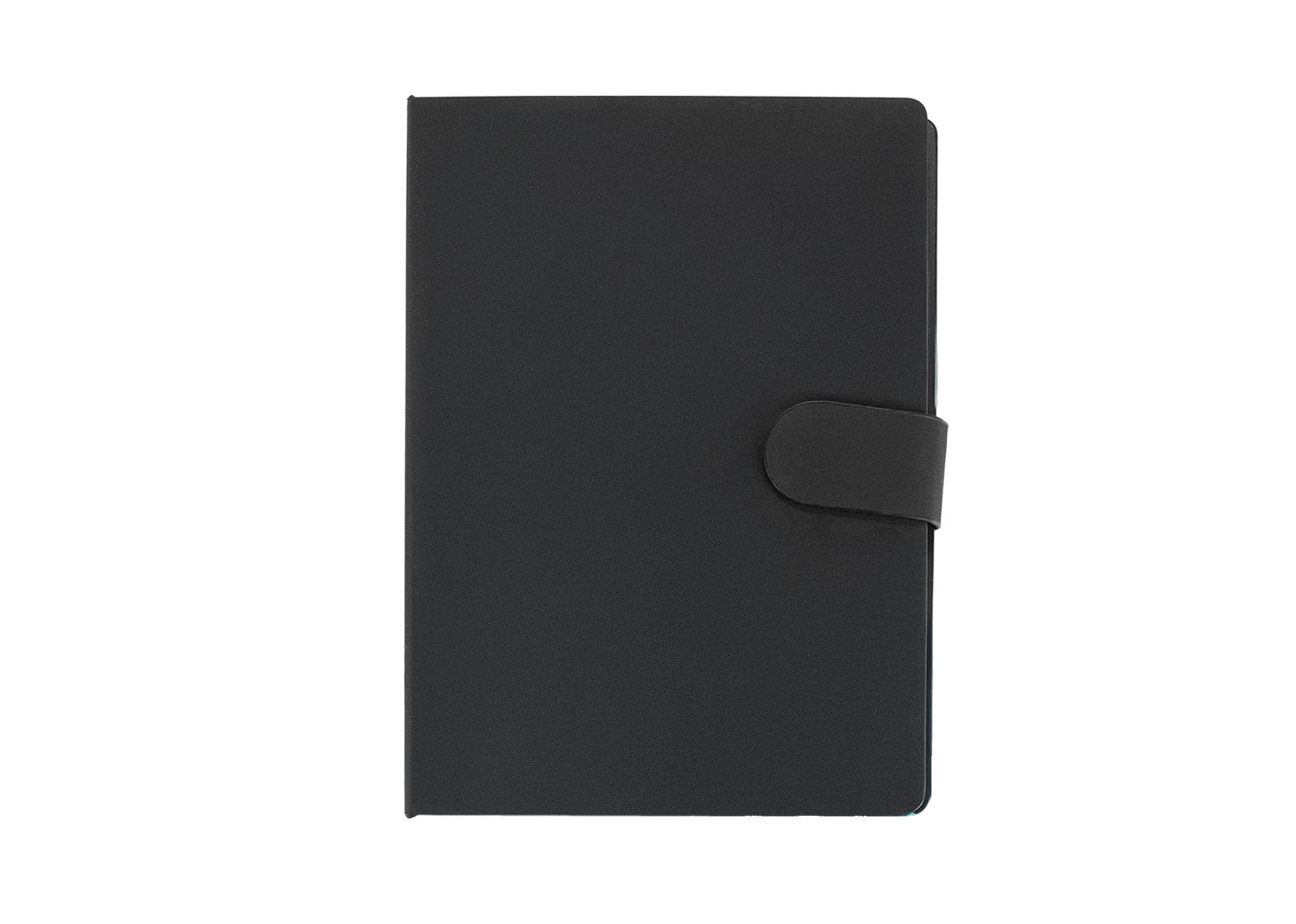 Funda de piel sintética con cierre magnético. Tamaño A5, 70 g, 80 hojas, con pegatinas de colores en el interior.