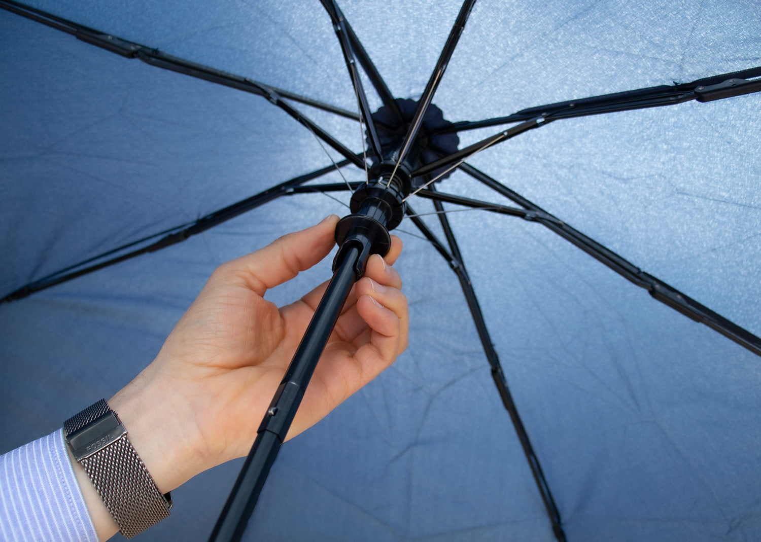 MATERIAL: 190T Pongee. Mango con acabado en caucho enchape en níquel.