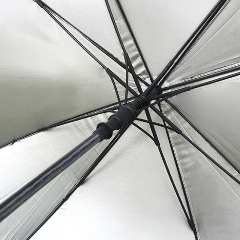 Poliéster 190 pongee con protección UV, de 28 pulgadas. Cobertura: 127 cm. Casco: 65 cm.