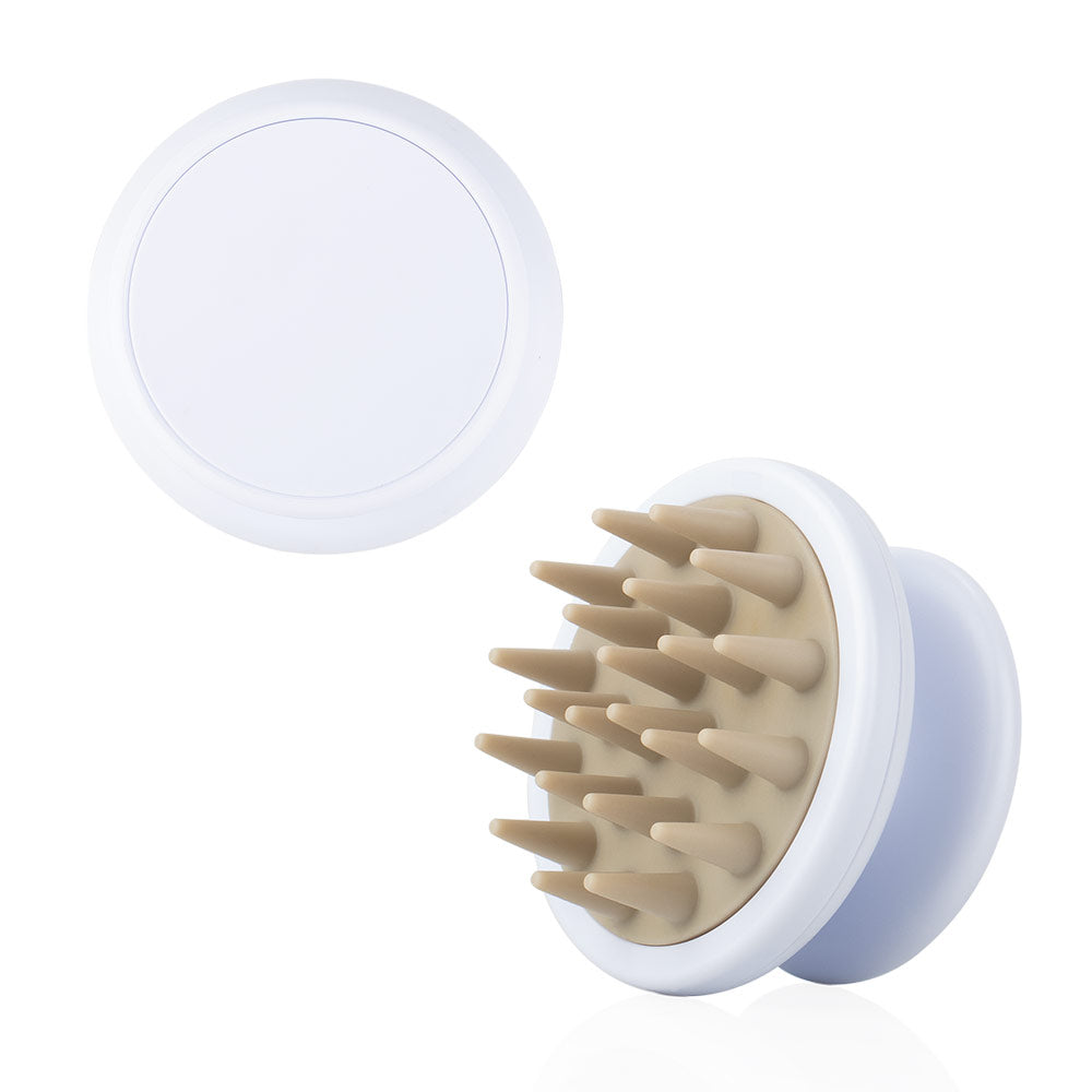 Cepillo masajeador para cuero cabelludo, fabricado en plástico con púas de silicona que brindan suavidad y comodidad. Cuenta con un mango ergonómico para un agarre seguro, ideal para aplicar shampoo, estimular la circulación y relajar durante el lavado. Resistente, fácil de limpiar y diseñado para uso diario.