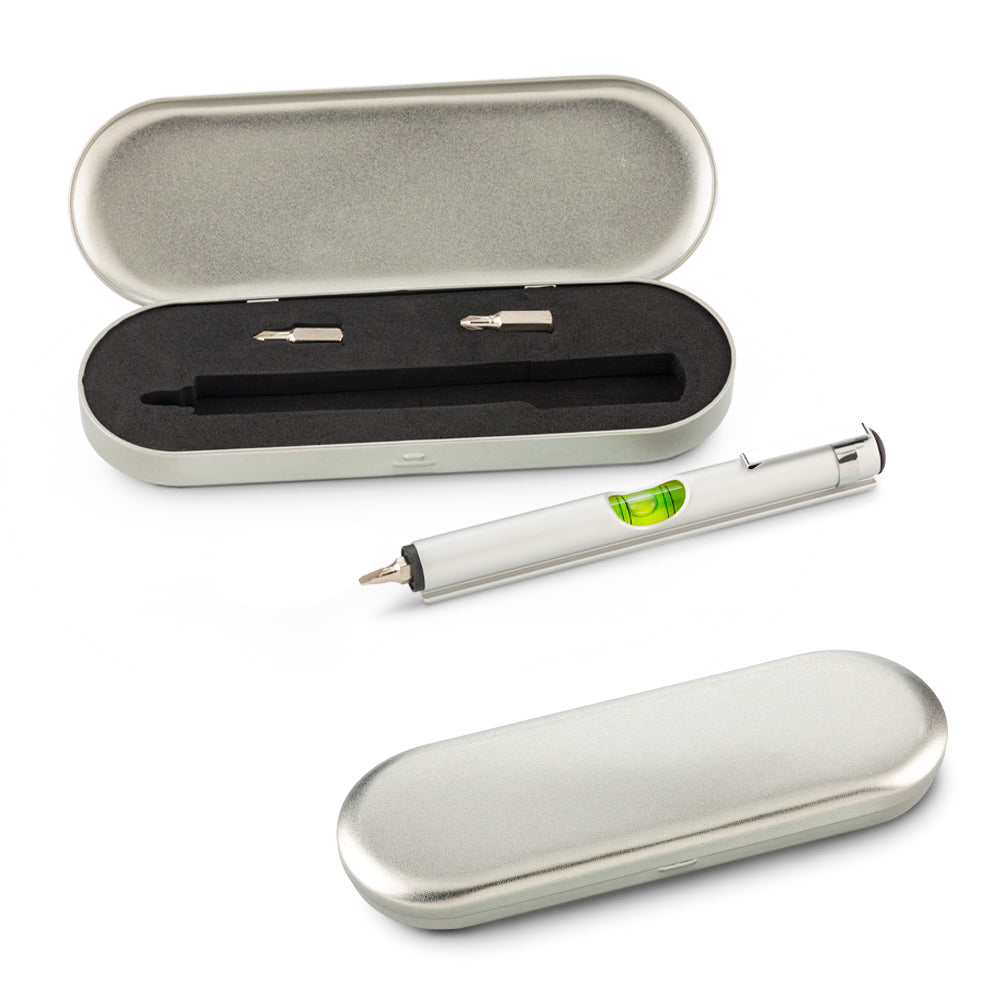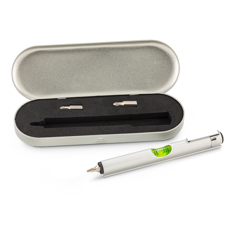Mini set metálico de 3 piezas de destornilladores y nivelador. Empaque caja individual.