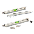 Set de bolígrafo plástico con regla, medidor de espesor y destornillador metálico con nivelador (2 de pala y 1 de estrella). Empaque caja individual.