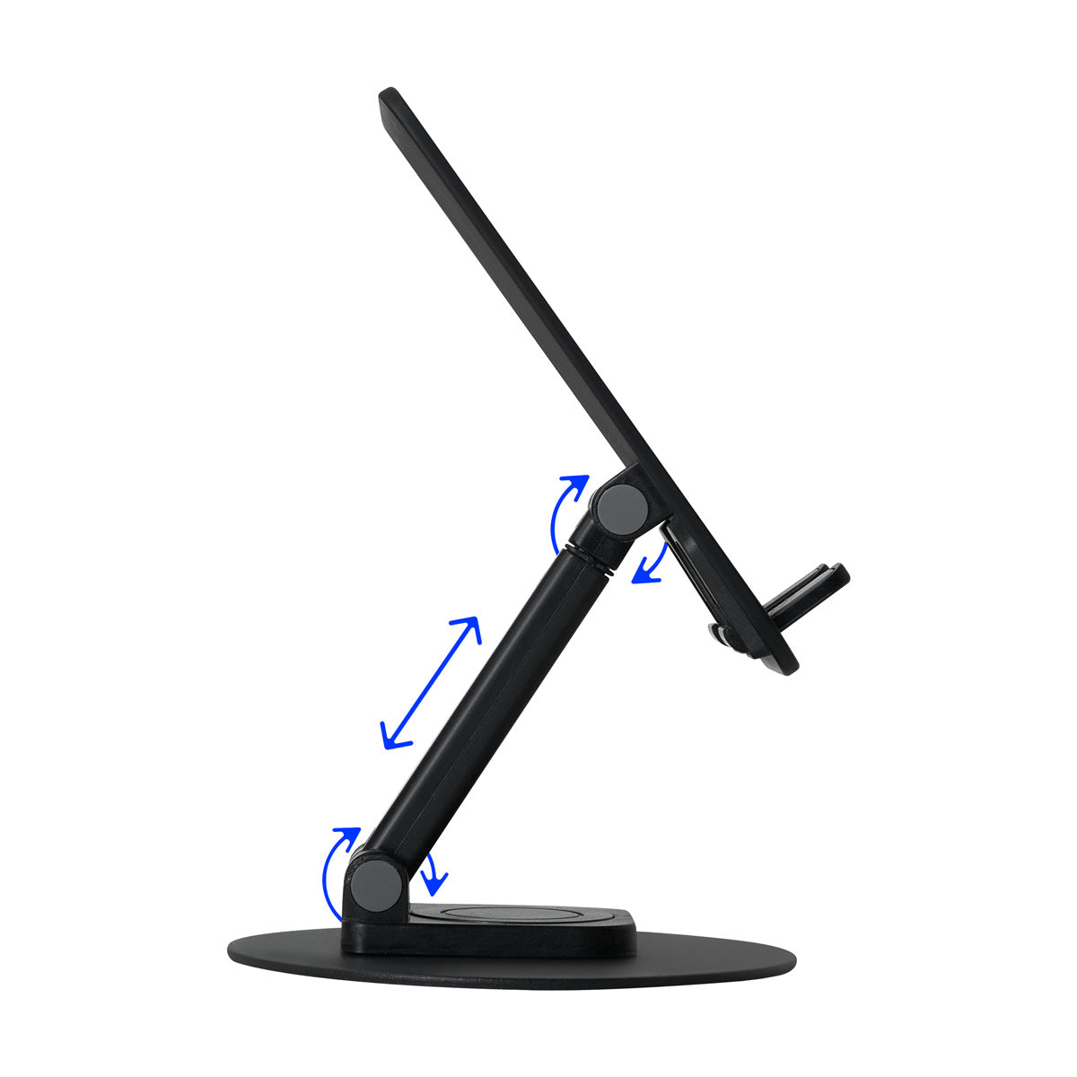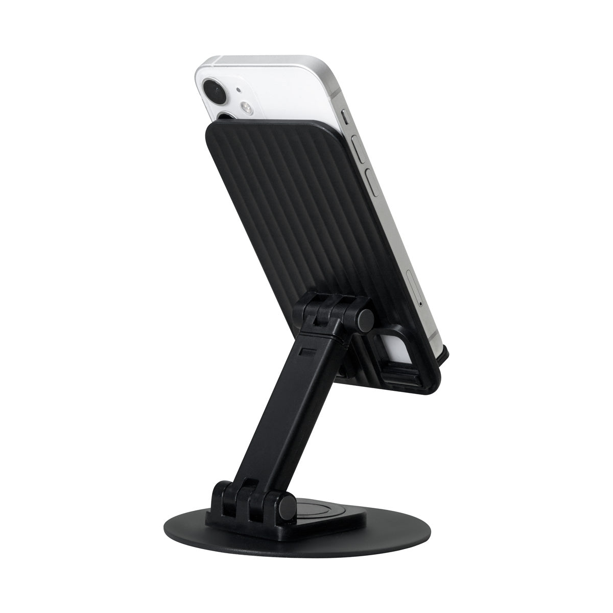 | Descripción: Soporte universal con diseno plegable. Incluye una base giratoria de 360° que permite un facil ajuste y personalizacion, lo que garantiza un angulo de vision comodo para el usuario. Desplegable a una altura maxima de 20 cm. Incluye caja individual. | |