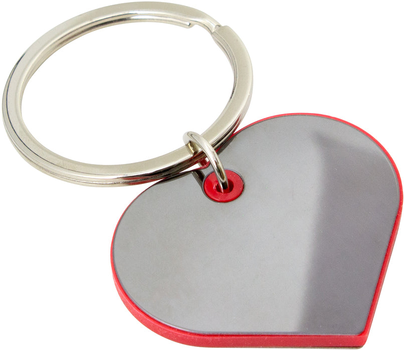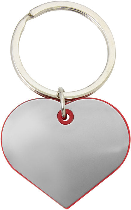 Llavero con forma de corazón. Estructura plástica de color con apliques de acero color gris gun de cada lado. Acabado brillante.