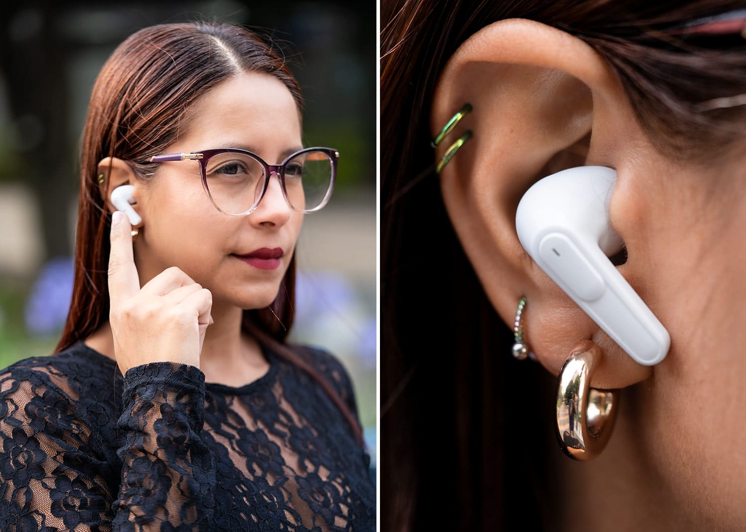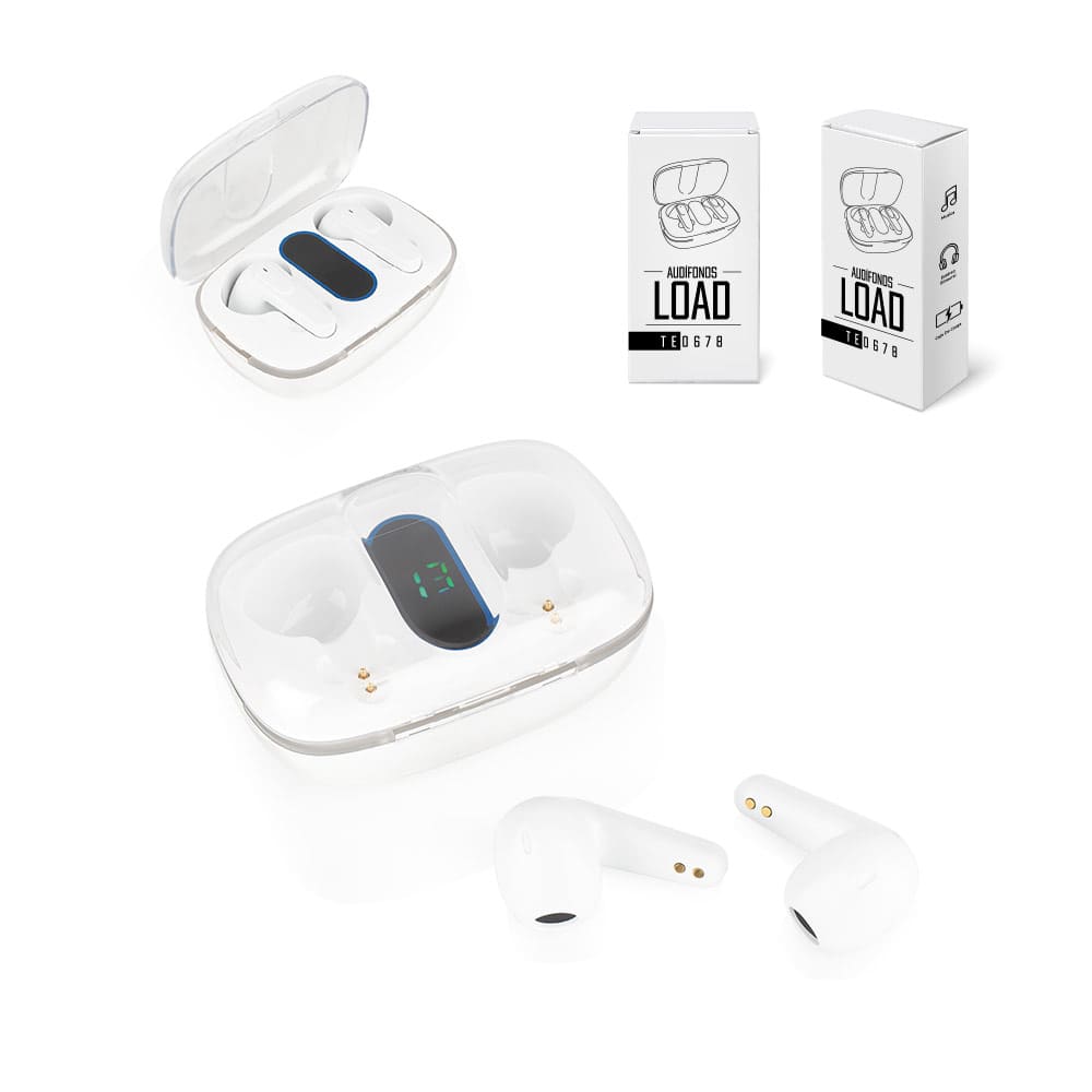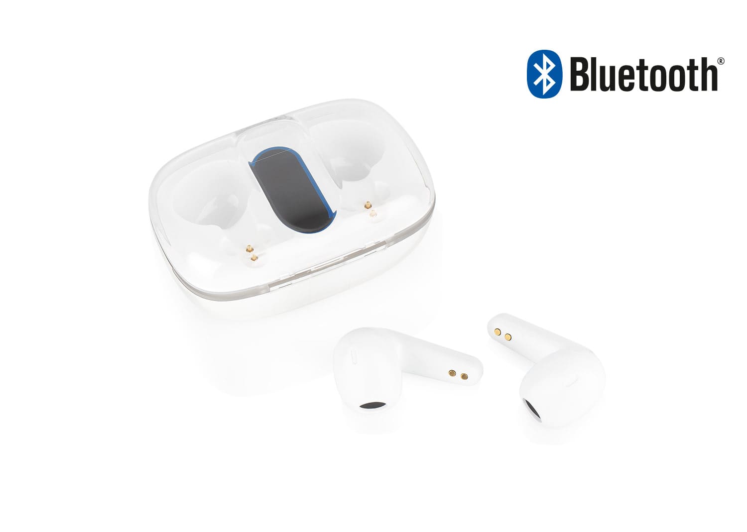 Audífonos bluetooth 5.3. diseño moderno. Caja de carga luminosa. Distancia de conexión 10 metros aproximadamente. Tiempo de uso de aproximadamente 3 horas. Funciona como manos libres.