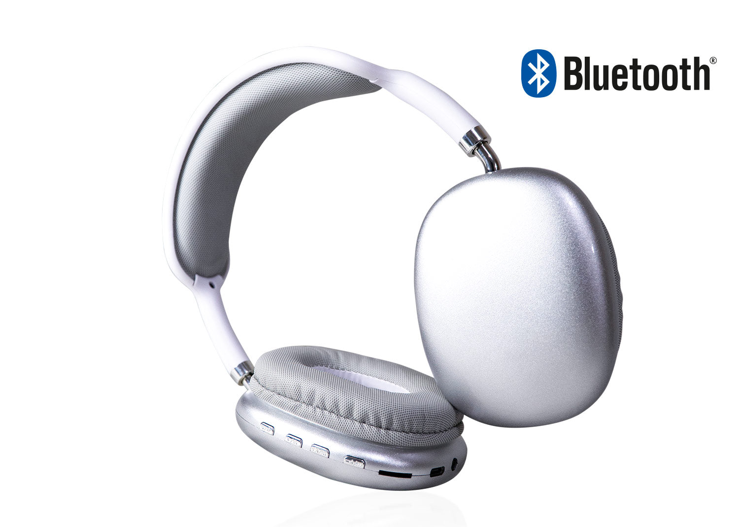 Audífonos Bluetooth 5.3, conector AUX para cable 3.5 mm, compatible con tarjeta TF y radio FM. Tiempo de uso aproximadamente 8 horas, puerto de carga Tipo C. Distancia de trabajo hasta 10 metros.
