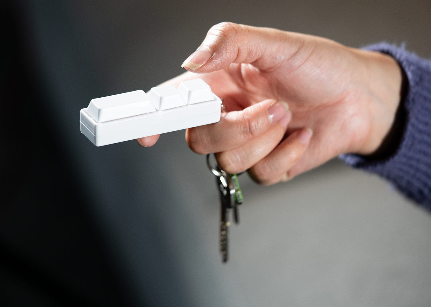 Este antiestrés consta de botones que están conectados entre sí en forma de línea y son cómodos y agradables al tacto. Posee argolla para usar como llavero.