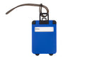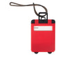 Etiqueta de equipaje en material PP, con correa de PVC resistente para sujetarla fácilmente a maletas o mochilas. En su interior incluye una pegatina para datos personales como nombre, dirección, correo electrónico y teléfono, lo que facilita la identificación del equipaje en caso de pérdida.