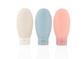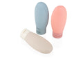 Set de botellas de viaje que incluye tres envases de 60 ml (5 X 10,8) con tapa de cierre a presión, ideales para transportar líquidos como shampoo, gel o loción; vienen en una bolsa transparente con sistema para colgar, lo que facilita su organización y acceso durante viajes o desplazamientos.